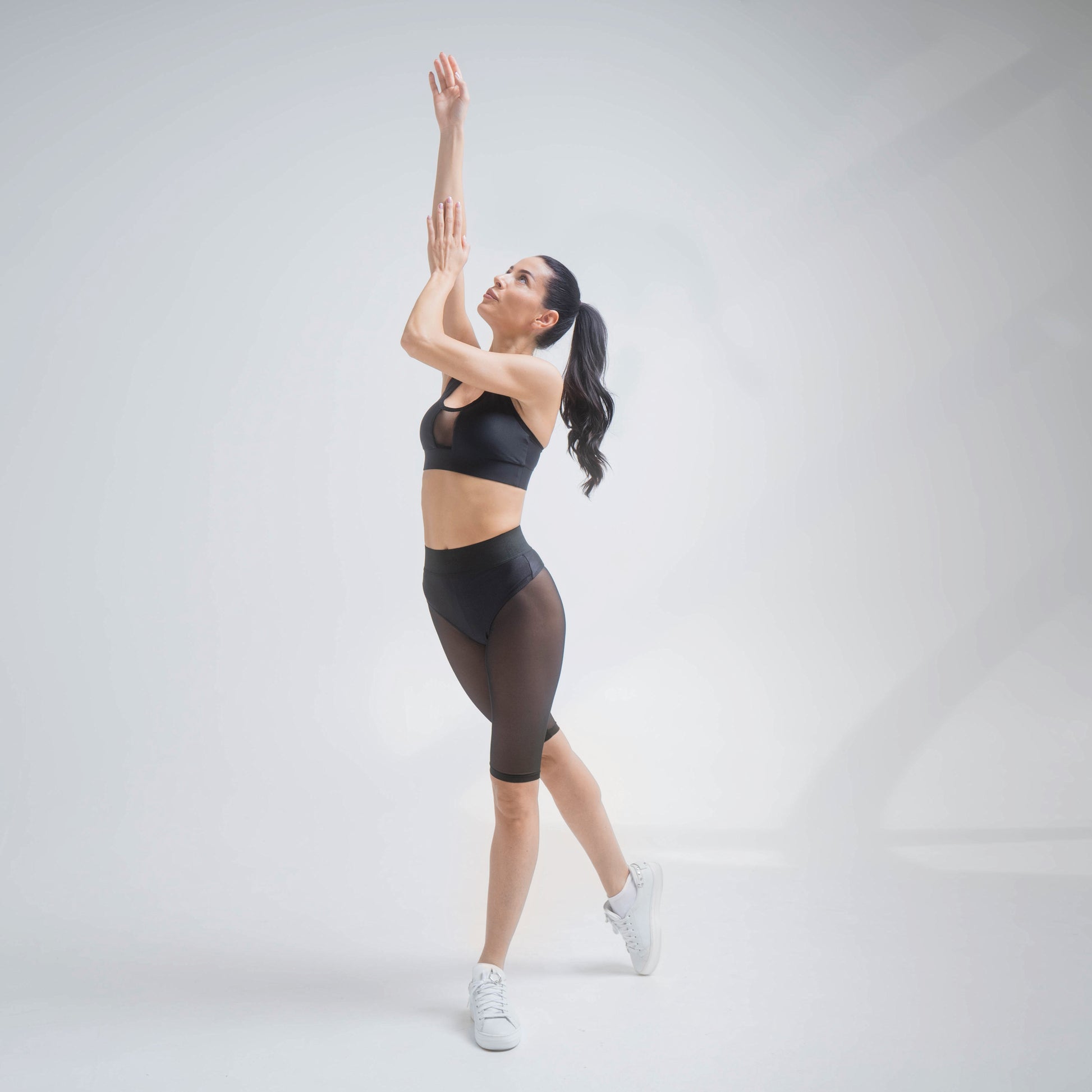 Sheer Mesh Shorts from the Crema collection is designed to offer a comfortable and stylish alternative to traditional activewear like these high waist stretch tulle cycling shorts. Designed with sheer panels on the front and back they create a smooth silhouette while the high waist emphasizes the body’s natural curves. You can combine Sheer Mesh Shorts together with a Crema Plessy Skirt.