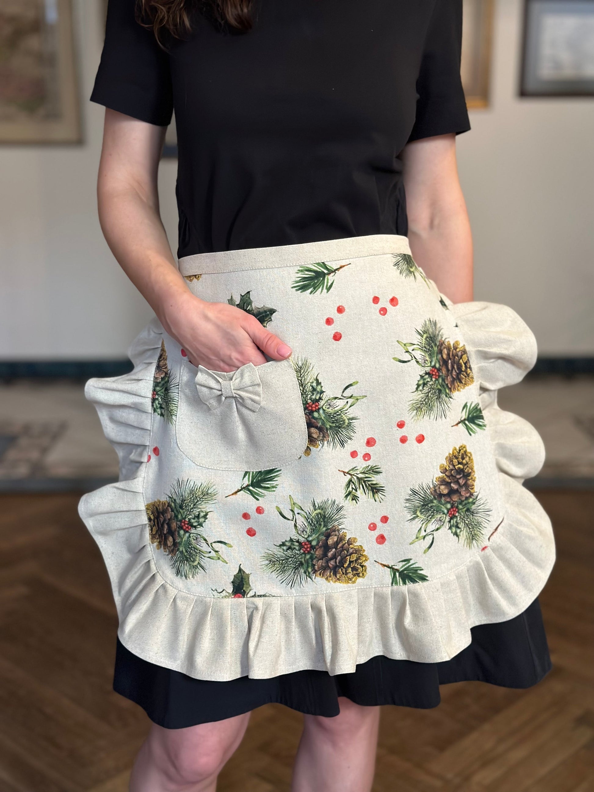 Christmas Ladies Half Apron with beige frill | Golden Pine